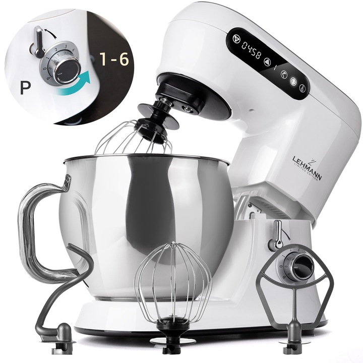 Amestecul se face uniform datorita mecanismului planetar, iar carligele de aluat interschimbabile ajuta la o framantare eficienta, indiferent de consistenta compozitiei. Are un afisaj digital cu temporizator integrat, ceea ce-mi permite sa setez exact durata de mixare, iar accesoriile acoperite cu teflon pot fi curatate usor in masina de spalat vase.